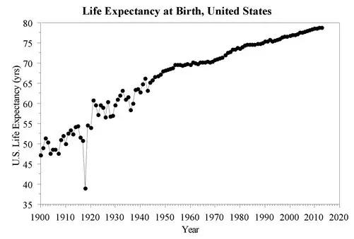 1900年,美國人均期望壽命是47歲,中國數據暫缺
