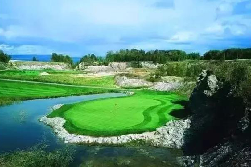 港灣高爾夫球場(chǎng)位于美國密歇根州,占地405公頃,是一個(gè)修建在廢棄工業(yè)舊址上的度假勝地和高爾夫社區。最初這里是一個(gè)采石場(chǎng),隨著(zhù)1981年水泥廠(chǎng)的關(guān)閉,也結束了為了從事水泥生產(chǎn)對當地頁(yè)巖和石灰石長(cháng)達百年的開(kāi)采,但卻留下了400英畝的荒地,看起來(lái)就像“月球表面”。在這片貧瘠的土地上,幾乎寸草不生。