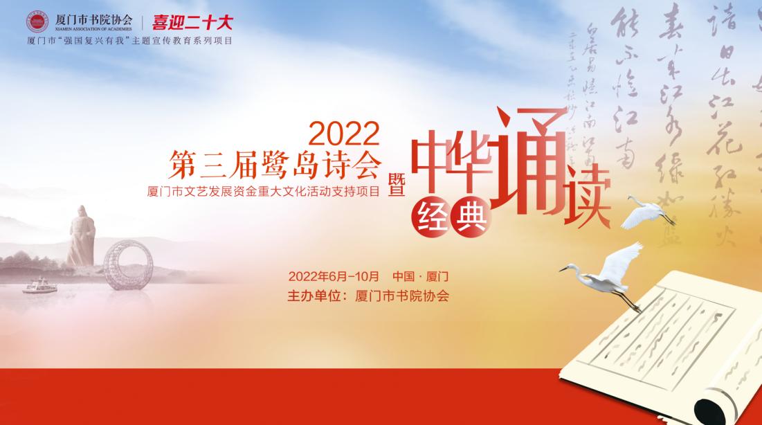 2022第三屆鷺島詩(shī)會(huì )暨中華經(jīng)典誦讀活動(dòng),是廈門(mén)市“強國復興有我”為主體的宣傳教育系列項目,屬于廈門(mén)市文藝發(fā)展資金支持項目,也是廈門(mén)市重大社會(huì )公益活動(dòng)。該活動(dòng)重在鼓勵青少年參與,重在培育青少年對傳承學(xué)習中華傳統詩(shī)詞的喜愛(ài)。